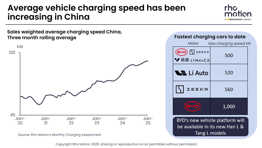 ‘Although BYD has jumped ahead of many other manufacturers, considering the market movements it was only a matter of time before the 1 MW milestone was reached in passenger cars,’ Rho Motion said.
